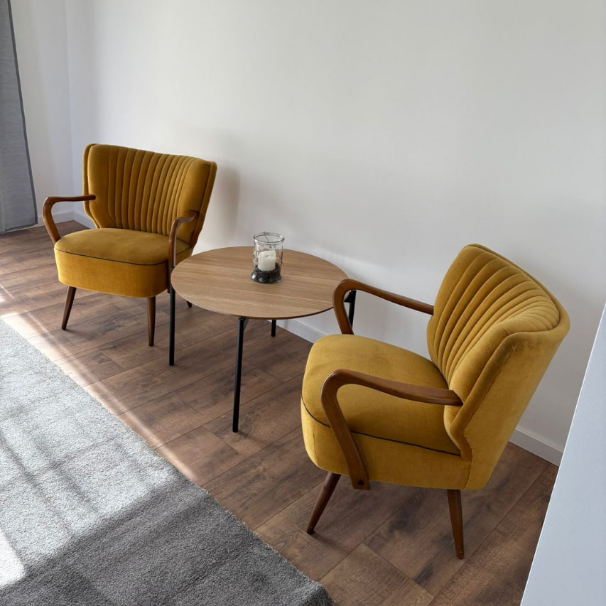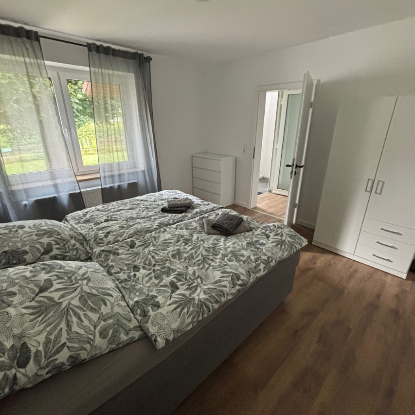 Das frisch sanierte Ferienhaus bietet auf ca. 70 m² modernen Komfort für bis zu 4 Personen. Die Wohnung im Erdgeschoss verfügt über ein Schlafzimmer mit komfortablem Boxspringbett, ein helles Wohnzimmer mit Schlafcouch, eine voll ausgestattete Küche sowie ein modernes Bad mit barrierefreier Dusche.