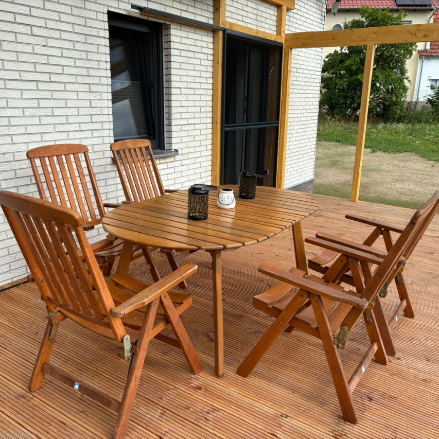 Besonderes Highlight ist die überdachte Terrasse mit direktem Zugang zum Garten – perfekt für entspannte Abende im Grünen. Das komplett eingezäunte Grundstück bietet zudem Sicherheit für Familien mit Kindern.